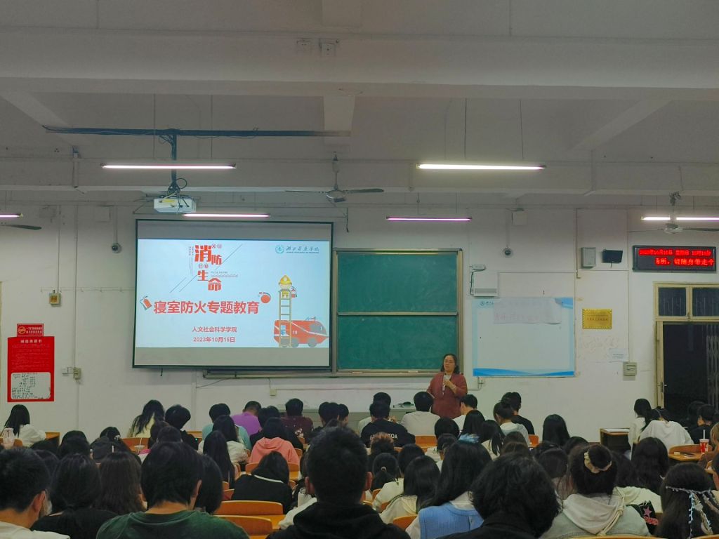 本网讯(通讯员 周佳佳)10月15日晚,人文社会科学学院在2201教室和5207教室召开消防安全专题教育,应用心理学专业全体在校生226名学生和辅导员参加。