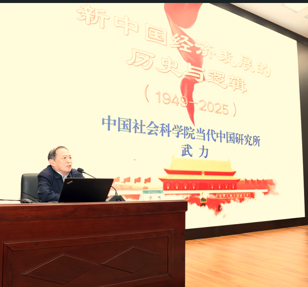 报告环节,武力老师以《新中国经济发展的历史与逻辑》为题,系统梳理了新中国经济从艰难起步、快速腾飞至转型升级的壮阔历程。他结合丰富的历史史料与翔实的数据,生动阐释了新中国经济发展史是一部在中国共产党领导下,立足基本国情、与时俱进探索、攻坚克难奋进的奋斗史,其成功逻辑在于始终坚守社会主义方向,顺应历史发展潮流、把握时代前进规律,走出了一条区别于西方模式的中国式现代化道路,为发展中国家走向繁荣富强提供了宝贵经验与启示。