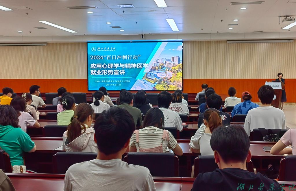 宣讲会上,郑丹凤详细解读了国家就业优先政策和高质量充分就业对我国全面建设社会主义现代化国家的重要意义,对当前的就业形势,大学生就业总量压力、结构性矛盾、重点群体就业难题进行深入分析,详细介绍了国家拓宽大学生就业渠道的系列举措、留鄂留堰及就业创业激励政策。她重点结合近三年我校毕业生就业去向行业分布特点及应用心理学与精神医学就业数据,呼吁我校学生要树立正确的就业观,加强职业胜任力培养,突破医药专业行业一元化思维限制,勇于尝试新型职业、不同领域工作,勇于到民营企业、重点行业、基层单位就业。最后,郑丹凤鼓励同学们要刻苦学习、掌握知识、锻炼能力、提升本领,要立“良医”志,做“济世”者,将个人奋斗与强国征程同频共振。