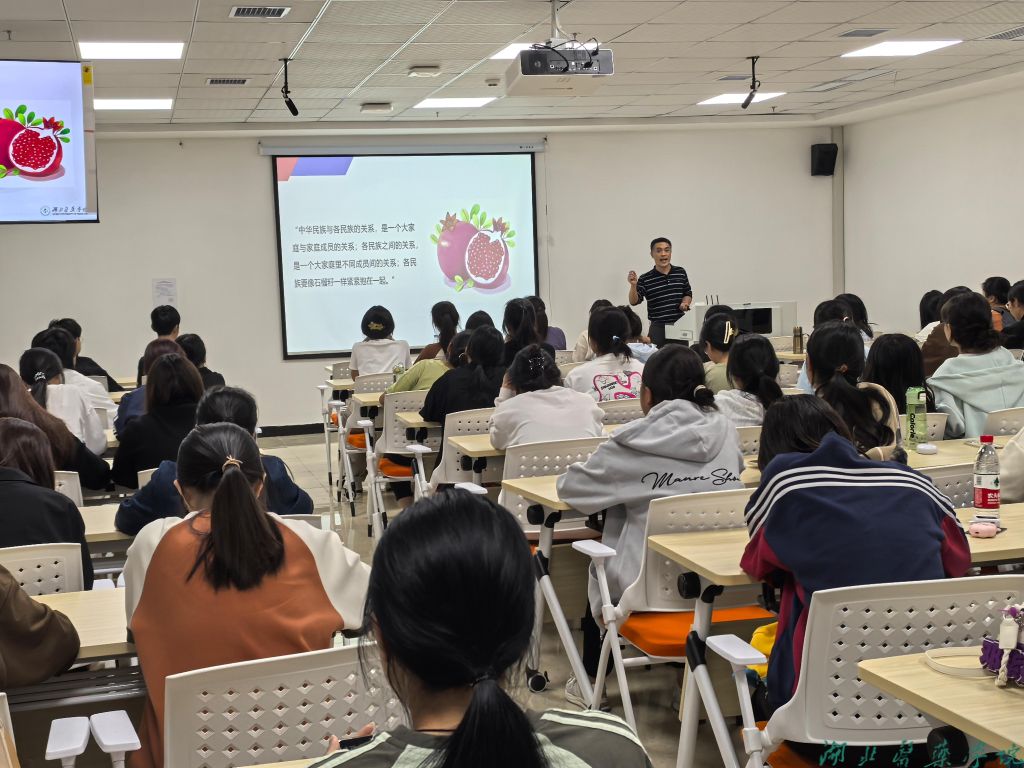本网讯(通讯员 江杉杉)为增强新生间的民族团结,铸牢中华民族共同体意识,10月11日下午,2138cn太阳集团在公卫楼教室三,面向2024级应用心理学93名新生开展铸牢中华民族共同体意识教育主题班会,学院副院长孙磊博士作了题为“正确认识中华民族和中华民族共同体,新时代青年要做铸牢中华民族共同体意识的坚定践行者”的报告。