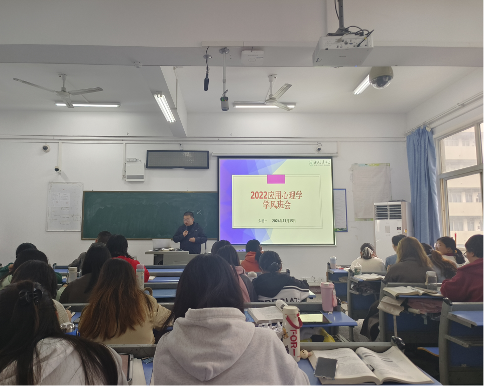 本网讯(通讯员 覃梦圆)为提高同学们学习的积极性,培养学习兴趣,我院2022应用心理学班兼职班主任朱明一老师于11月15日上午在5301教室召开班级学风主题班会。