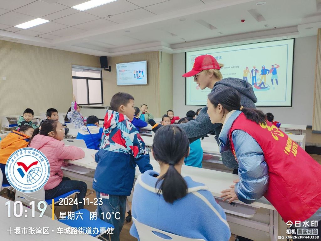 本网讯(通讯员 熊焱)为了增强小学生校园霸凌保护意识,了解校园霸凌,更好的保护自己,保障社区少年儿童的心理健康成长,11月23日上午,太阳集团2138心灵导航志愿服务队赴十堰市社会组织基地开展了校园霸凌主题宣讲活动。