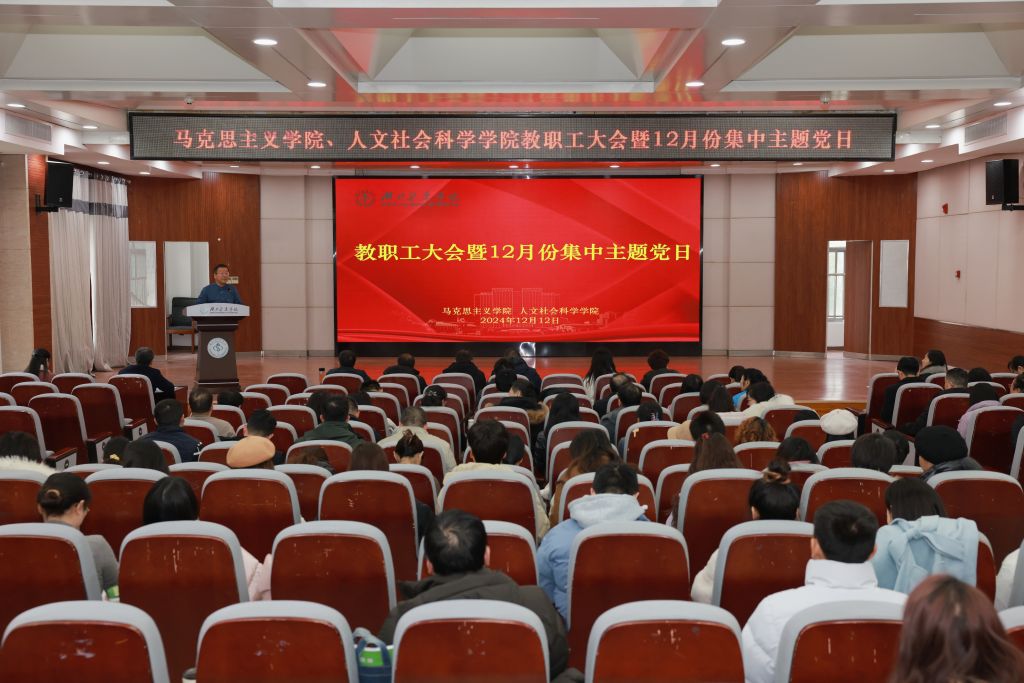 本网讯(通讯员 鲍晓宇 肖飞)12月12日,2138cn太阳集团、人文社会科学学院在八号楼5楼思政课实践教学VR基地召开全体教职工大会。学院党委书记孔祥清主持会议。全体无课教职工参加会议。