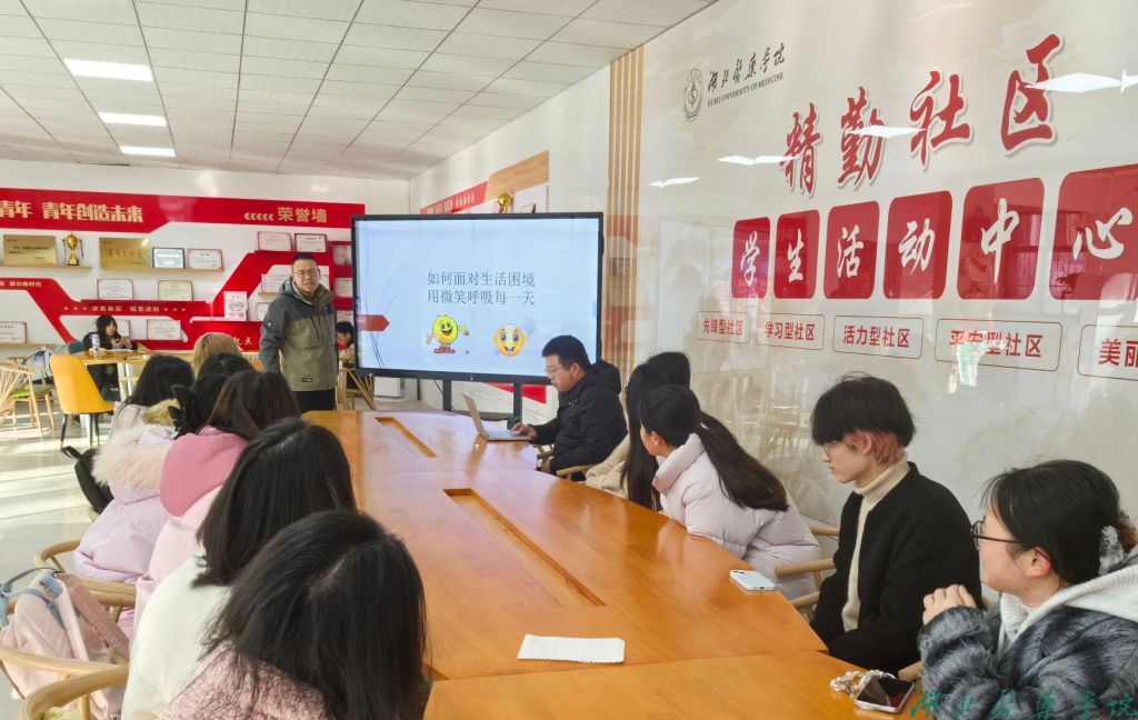 本网讯(通讯员 韩丽萍)随着期末考试的临近,校园里的紧张氛围日益浓厚。为帮助学生缓解备考压力,以积极乐观的心态面对生活中的种种困境,12月20日上午,2138cn太阳集团应用心理学系张建涛博士在精勤社区学生活动中心开展了一场主题为“如何面对生活困境,用微笑呼吸每一天”的精彩讲座,受到同学们的欢迎。