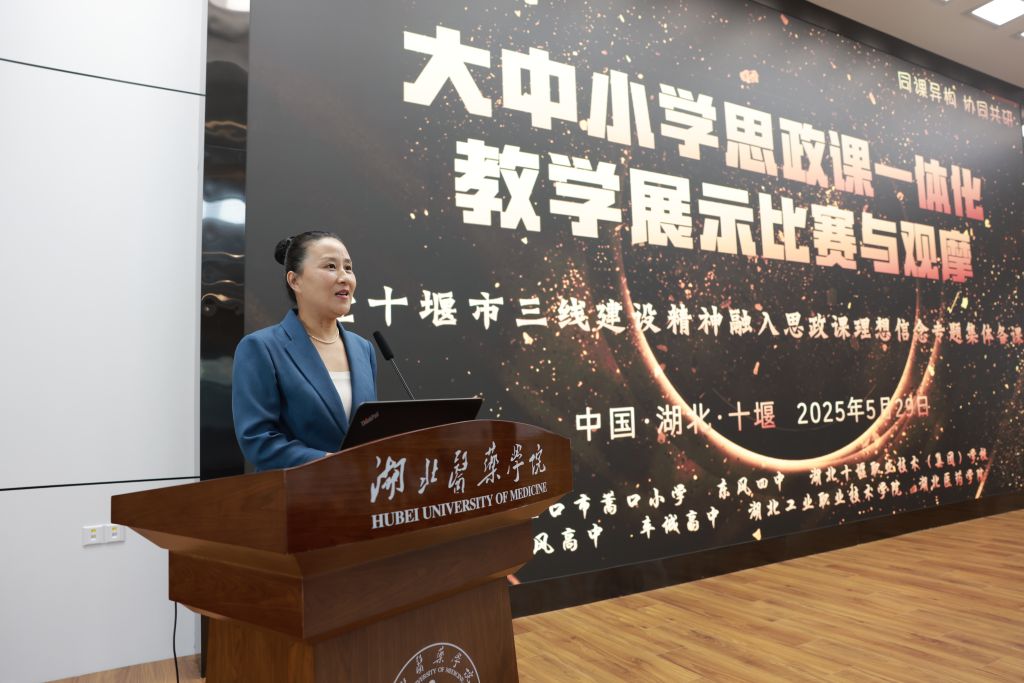 谭艳在致辞中指出,大中小学思政教育一体化建设是落实"为党育人、为国育才"教育大计的关键举措。各成员单位始终坚持把立德树人作为根本任务,精准把握一体化建设中目标导向、问题导向、效果导向的辩证关系,通过加强顶层设计构建科学思政课程体系,切实提升思政课一体化教学的使命担当,实现全员育人、全程育人、全方位育人。本次教学展示活动创新性地将十堰市三线建设精神融入课程设计,提供了一个让各学段思政教师同台竞技、互相交流、互相融合的平台,期待参赛教师展现高水平教学能力。同时,作为十堰市大中小学思政课一体化共同体牵头单位,太阳集团2138将充分发挥学科、师资和课程建设优势,着力打造具有区域特色的思政课一体化建设样板。