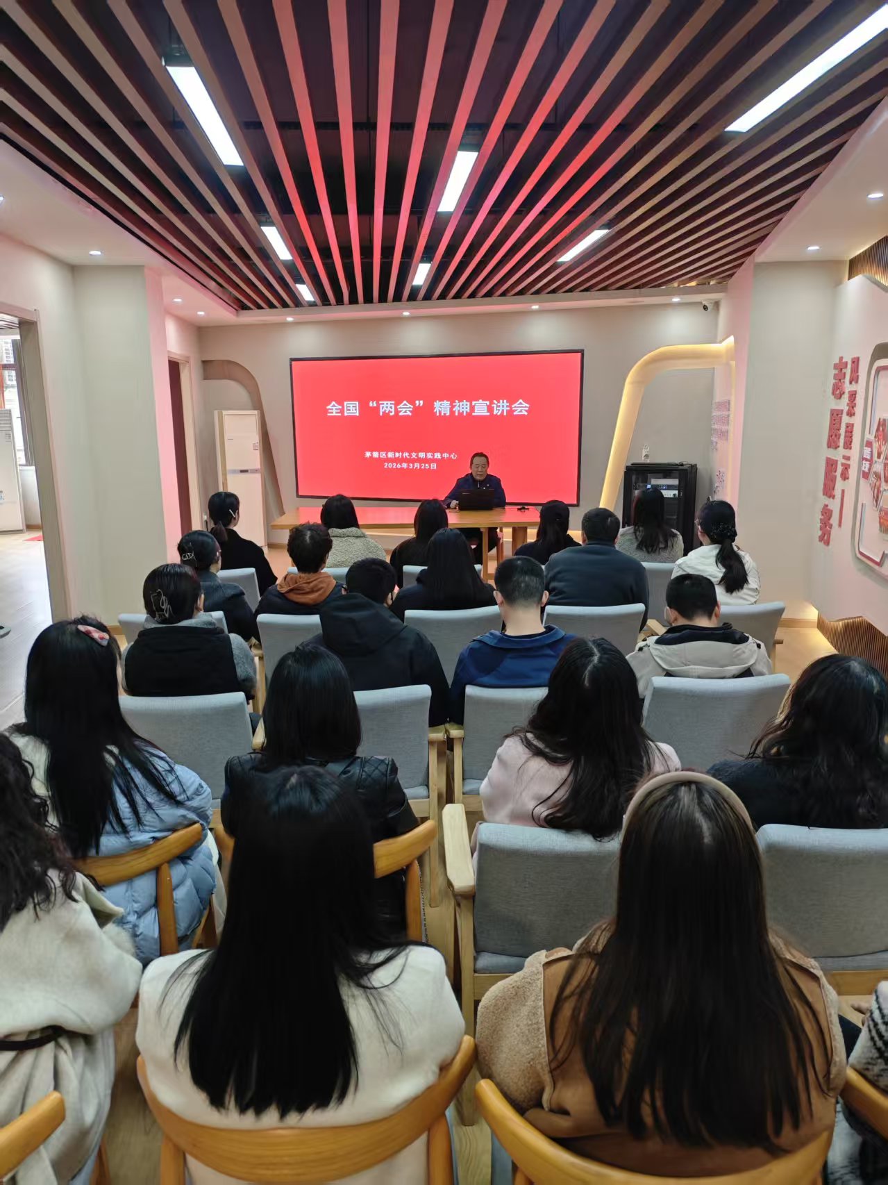 本网讯(通讯员 孟曙光 何宝华)为深入学习贯彻2026年全国两会精神,把党中央的决策部署和两会“好声音”送到基层一线,3月25日下午,茅箭区新时代文明实践中心组织辖区党员、群众在五堰街办新时代文明实践所召开全国两会精神宣讲会,特邀2138cn太阳集团院长陈全新教授现场宣讲。