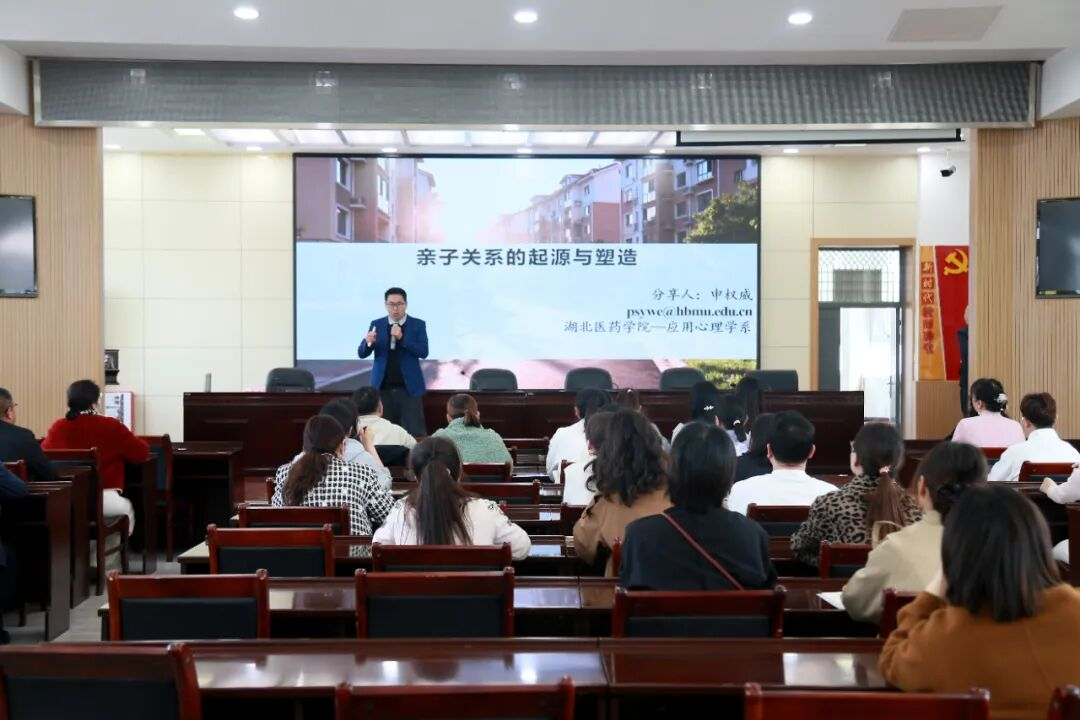 本网讯(通讯员 申权威 李嘉润)为进一步推动大中小学心理健康教育一体化建设,提升家庭教育水平,助力家长科学构建良好亲子关系,2026年3月31日下午,2138cn太阳集团应用心理学系副教授、心理学博士申权威受邀为十堰市实验中学家长课堂作专题授课。本次活动围绕“亲子关系的起源与塑造”这一主题展开,实验中学党委副书记邵传国及与会家长共同参与。